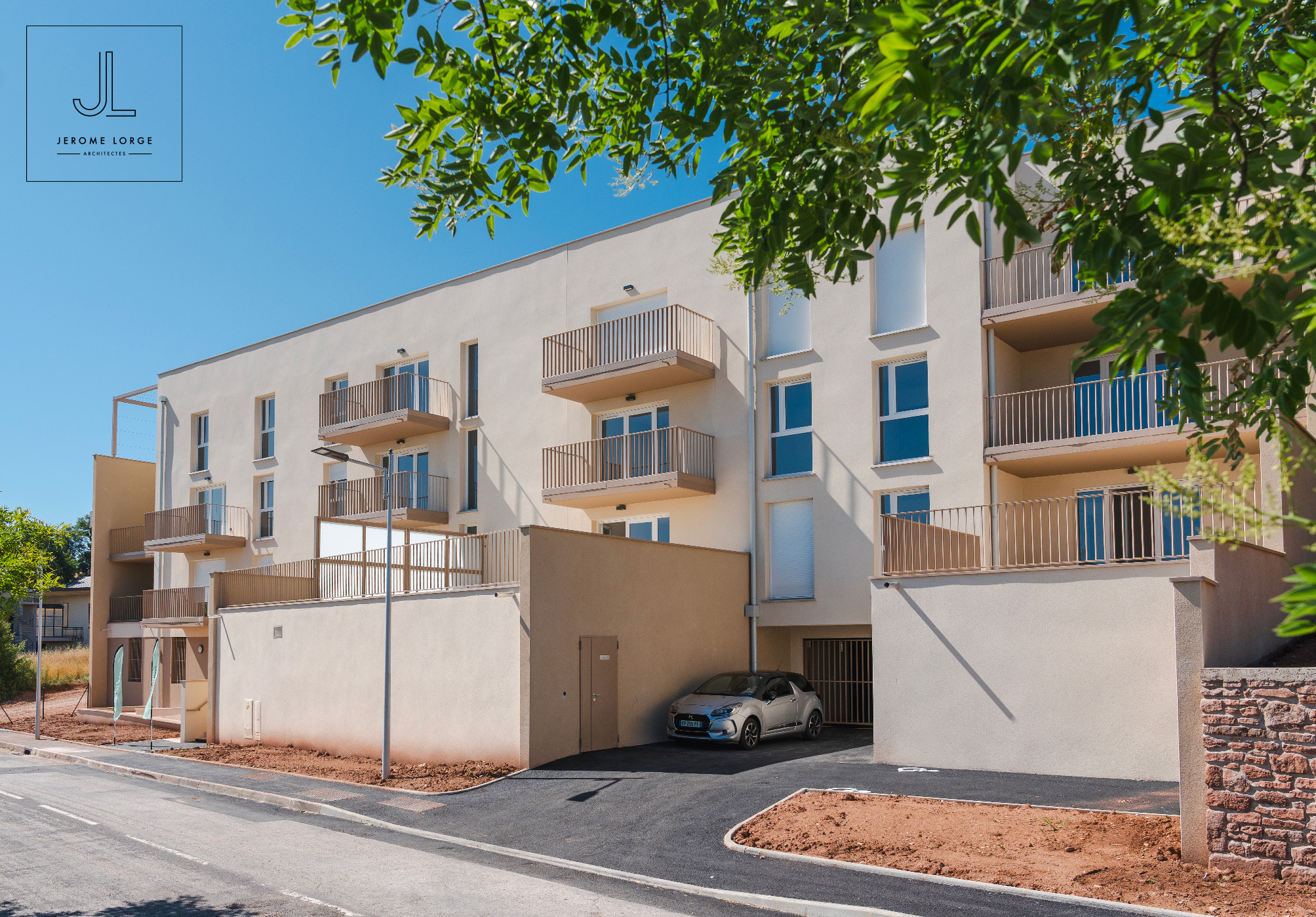 La résidence l’Essor se situe à Rodez, dans un secteur mixte occupé par des activités commerciales, tertiaires et des logements. La parcelle entre 2 rues présente un relief trés prononcé descendant vers le Nord. La résidence propose l’implantation de 2 bâtiments comprenant 41 logements collectifs en R+1 sur parking pour le bâtiment A, rue Carrère et en R+2 sur parking pour le bâtiment B, Chemin de Salabru.